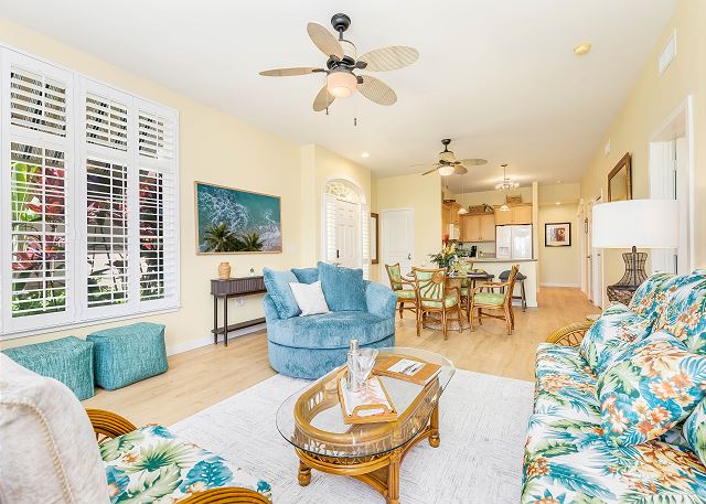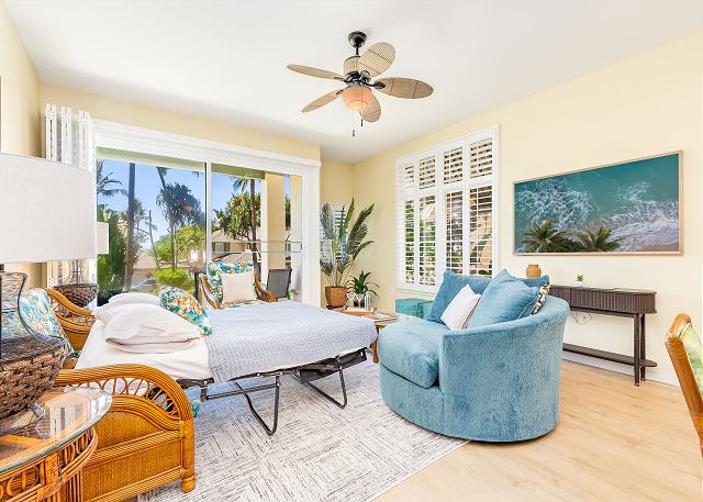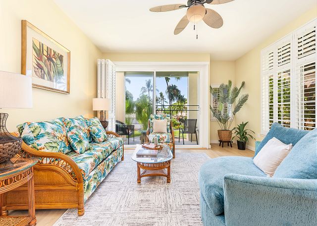 世界的に有名なコオリナ・リゾートの正面玄関のすぐ前に位置する、高級ゲートコミュニティ、カイ・ラニ・アット・コオリナへようこそ。美しく整えられた3ベッドルーム、2バスルームのコンドミニアムは、1階に位置し、緑豊かなトロピカルガーデンに囲まれた静かな庭園の景色を望めます。