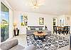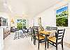 この居心地の良いヴィラに足を踏み入れれば、すぐにくつろいだ気分になるでしょう。オープンコンセプトのリビングスペースは、リラックスしたり、ゲストと過ごしたり、アイランドライフを満喫するのに最適です。快適なシーティングエリアは、6人掛けの大きなダイニングテーブルへと続き、ご家族でのお食事やご友人との集まりに最適です。設備の整ったキッチンには、最新の家電製品、広々としたレイアウト、そして2脚の椅子を備えたアイランドキッチンが備わっています。料理、会話、そしてゆったりとした食事が楽しめる、そんなキッチンです。