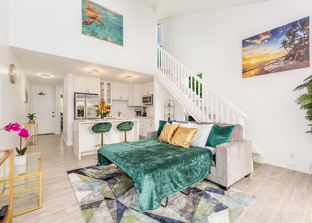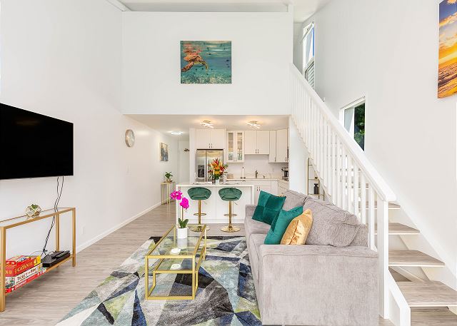 タートルベイリゾートと美しいビーチから歩いてすぐという最高のロケーションにあり、ハワイ本来の自然を感じることのできるKuilima Estates内の2階、2ベッドルーム、2バスルームのタウンハウスタイプのユニット。 フルキッチン、洗濯機/乾燥機、テニスコート、無料駐車場、ゲスト用駐車場、各部屋のエアコン、無料WiFi完備。