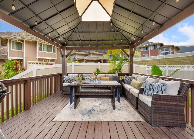 3 ベッドルーム - for 8 宿泊者 (最大 8)ベッドタイプ : 1キング, 1クイーン、1バンクベッド(2段ベッド) オアフ島の西側、マカハバレーに2023年に建設されたゲートコミュニティー、コテージ・アット・マウナ・オルの平屋の一軒家。バーベキューが存分に楽しめる広いポーチが特徴です。 まだまだ観光客の少ないマカハビーチはイルカの生息地としても知られています。喧騒から離れて、のんびりと家族や友達とハワイらしいひと時を過ごすのに最適です。 3ベッドルーム2バスルームの十分な広さの一軒家で8名までご利用いただけます。