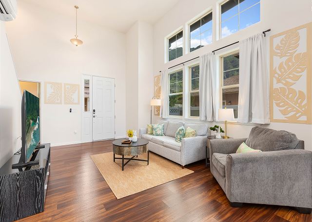 美しくデザインされた3ベッドルーム、2.5バスルームのこの隠れ家は、まるで自宅にいるかのような快適さを南国の楽園でお届けします。広々とした裏庭、便利なランドリー設備、高速インターネットを備え、快適な滞在と充実したネットワークをお届けします。一歩足を踏み入れれば、アロハスピリットの温かさに包まれます。居心地の良いリビングエリアは、くつろぎのひとときにも、集いのひとときにも最適です。快適な椅子と薄型テレビでゆったりとおくつろぎください。しかし、真に素晴らしいのは、太平洋の雄大な景色とドラマチックな山々の景観が織りなす、忘れられない思い出となるでしょう。