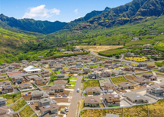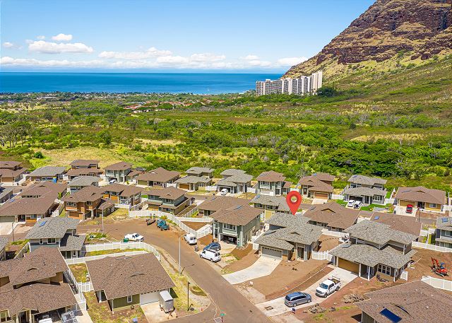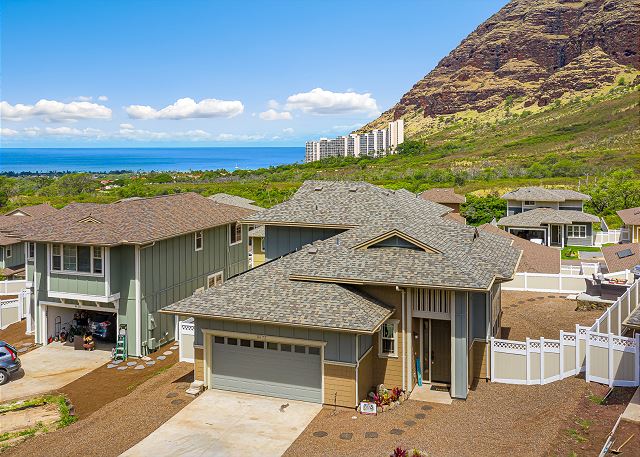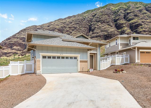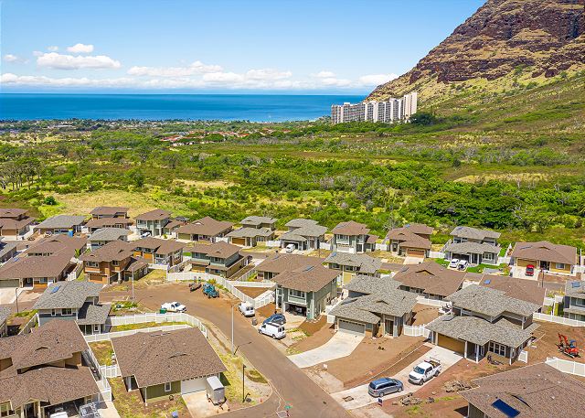 オアフ島の西側、マカハバレーに2023年に建設されたゲートコミュニティー、コテージ・アット・マウナ・オルの一軒家。24時間セキュリティーのいるゲートコミュニティー。 お庭からは真っ青に広がる海を眺めることができます。まだまだ観光客の少ないマカハビーチはイルカの生息地としても知られています。喧騒から離れて、のんびりと家族や友達とハワイらしいひと時を過ごすのに最適です。