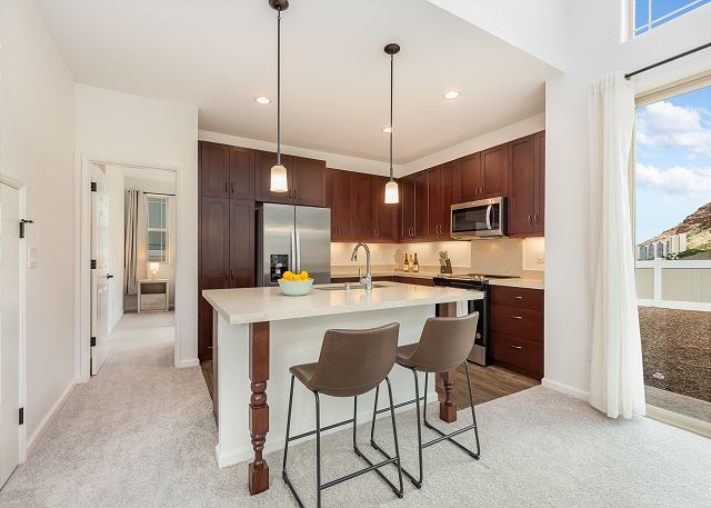 3 ベッドルーム - for 8 宿泊者 (最大 8)ベッドタイプ : 1キング, 1クイーン、1バンクベッド(2段ベッド) オアフ島の西側、マカハバレーに2023年に建設されたゲートコミュニティー、コテージ・アット・マウナ・オルの平屋の一軒家。バーベキューが存分に楽しめる広いポーチが特徴です。 まだまだ観光客の少ないマカハビーチはイルカの生息地としても知られています。喧騒から離れて、のんびりと家族や友達とハワイらしいひと時を過ごすのに最適です。 3ベッドルーム2バスルームの十分な広さの一軒家で8名までご利用いただけます。