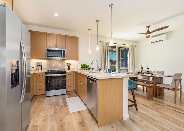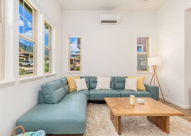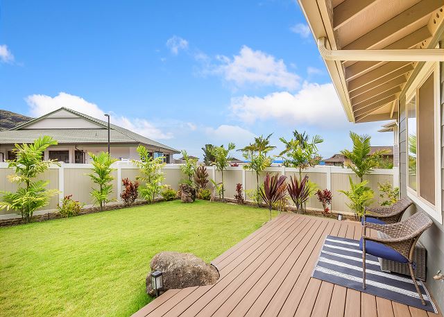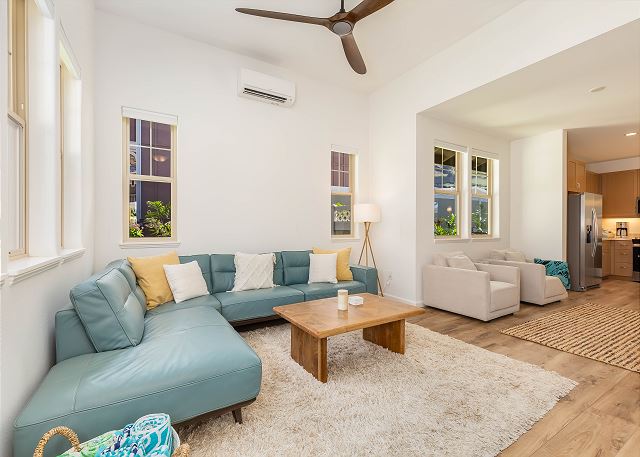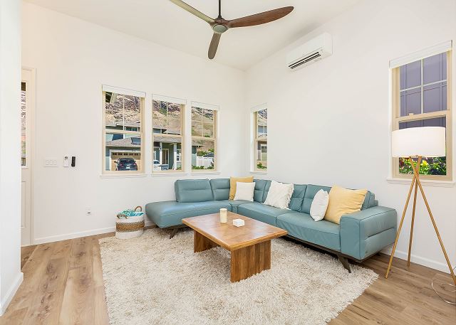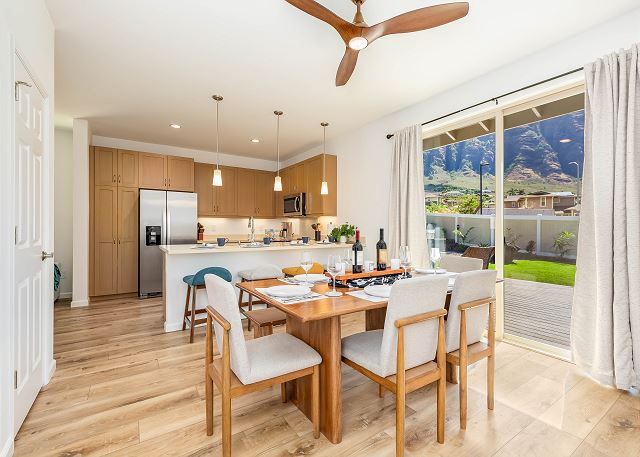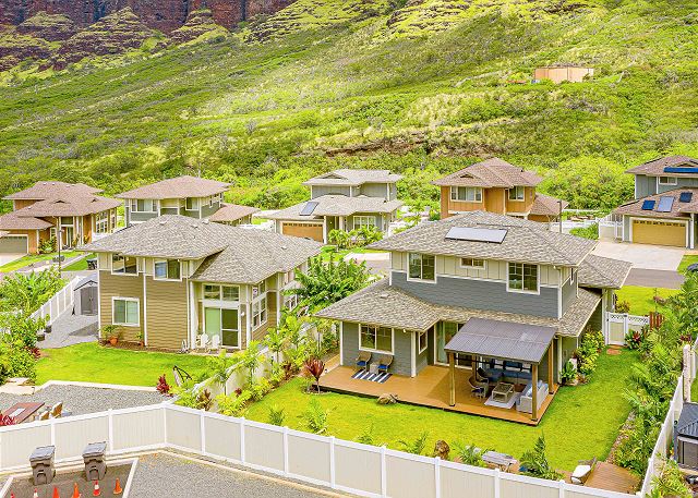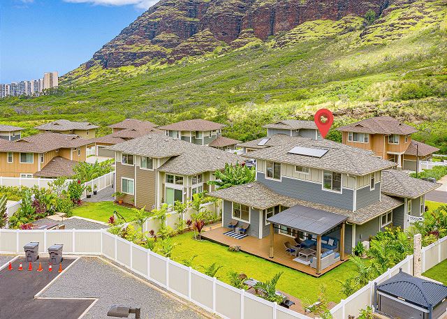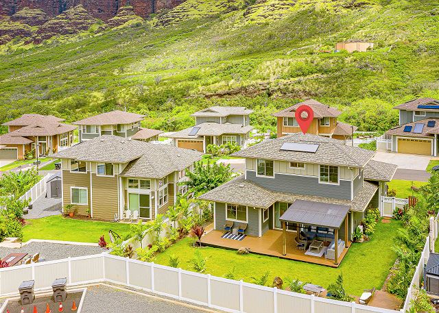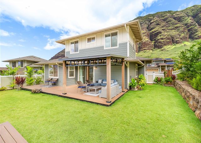 4 ベッドルーム - for 9 宿泊者 (最大 9)ベッドタイプ : 3クイーン、1バンクベッド(2段ベッド)、1ソファーベッド オアフ島の西側、マカハバレーに2023年に建設されたゲートコミュニティー、コテージ・アット・マウナ・オルのトロピカルな一軒家。オーシャンビューの庭のパティオでゆったりとした時間を過ごすたり、バーベキューを楽しむのに最適です。 まだまだ観光客の少ないマカハビーチはイルカの生息地としても知られています。喧騒から離れて、のんびりと家族や友達とハワイらしいひと時を過ごすのに最適です。 4ベッドルーム2.5バスルームの十分な広さの一軒家で9名までご利用いただけます。