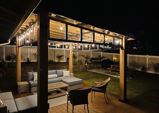 Backyard: spacious, comfy patio furniture, and even an outdoor shower! Best of all, you can see the beautiful ocean from the yard. There was also a grill, but we did not use it during our stay.