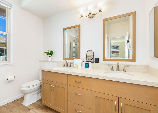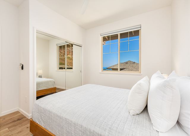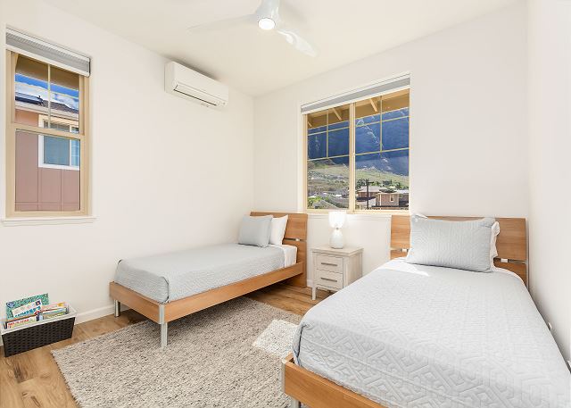 4 ベッドルーム - for 10 宿泊者 (最大 10)オアフ島の西側、マカハバレーに2023年に建設されたゲートコミュニティー、コテージ・アット・マウナ・オルの中でも開発業者の自慢の一軒。1階からも、お庭からも海と山と谷の景色が大きく広がります。 2階のマスターベッドルームと2つのゲストルームの他に、入り口が別になったミニキッチン、洗濯機・乾燥機付きのもう一つのマスターベッドルーム。4ベッドルーム3.5バスルームの十分な広さの一軒家で10名までご利用いただけます。