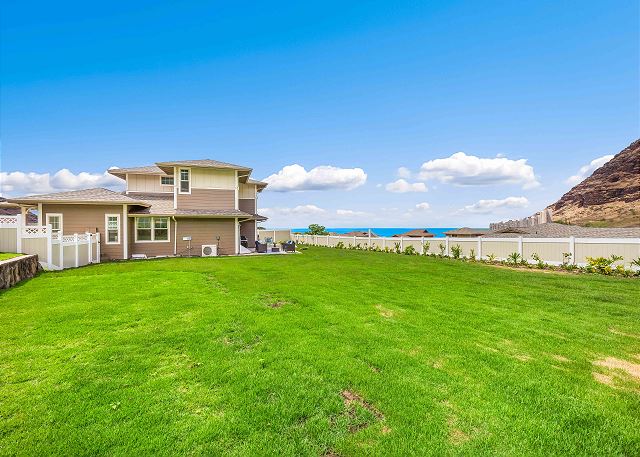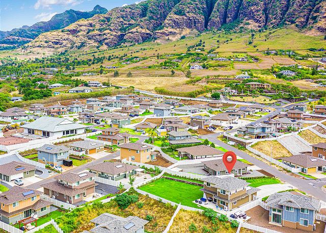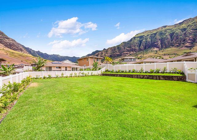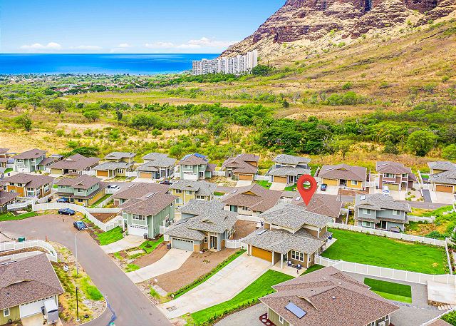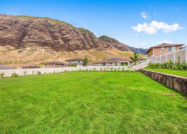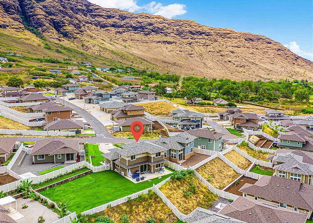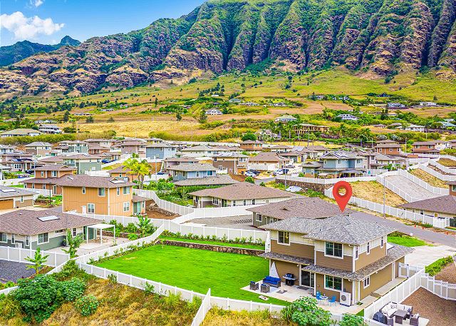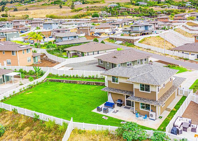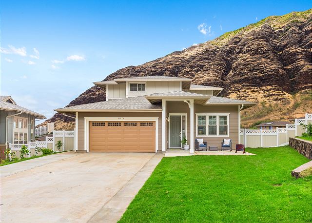 4 ベッドルーム - for 8 宿泊者 (最大 8)オアフ島の西側、マカハバレーに2023年に建設されたゲートコミュニティー、コテージ・アット・マウナ・オルの大きめの一軒家。清々しい芝生が気持ちの良い2階建となります。
