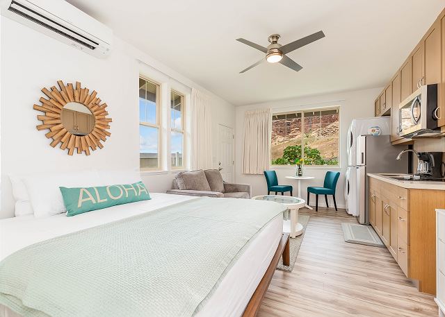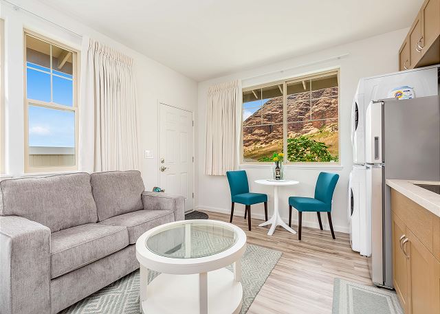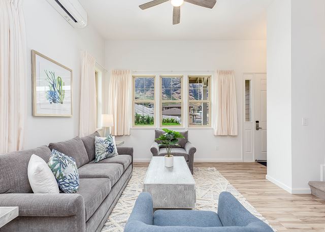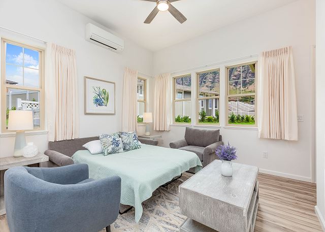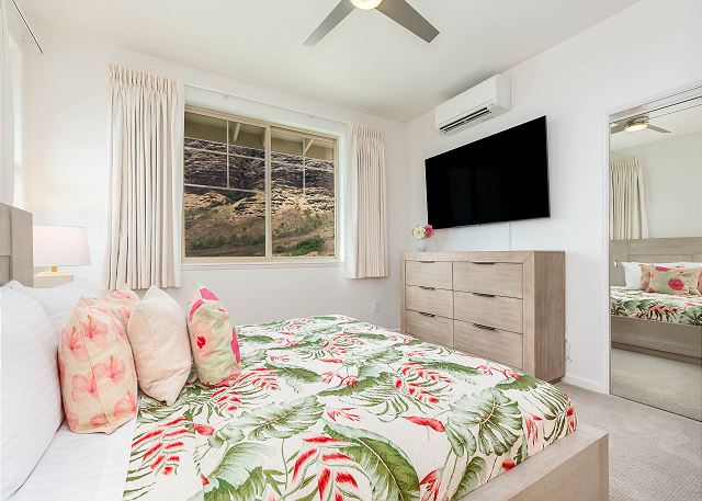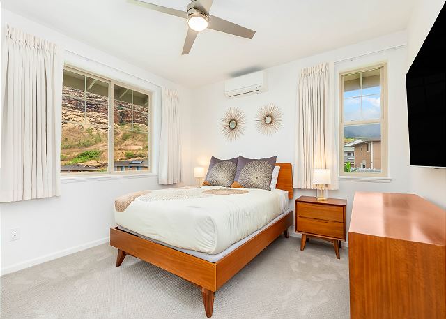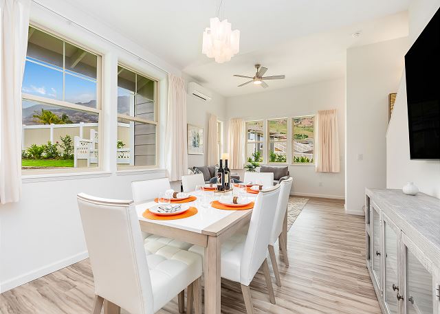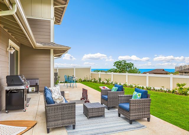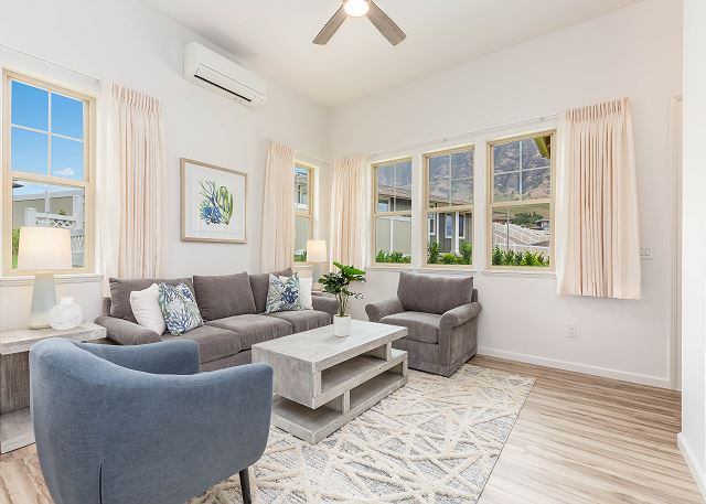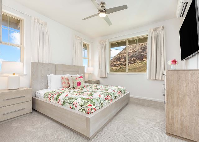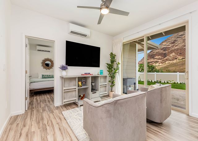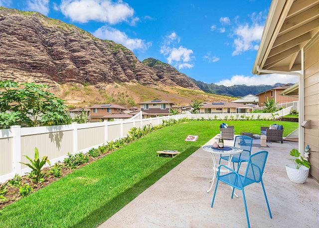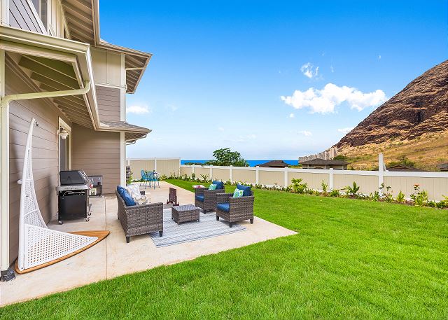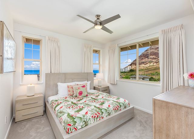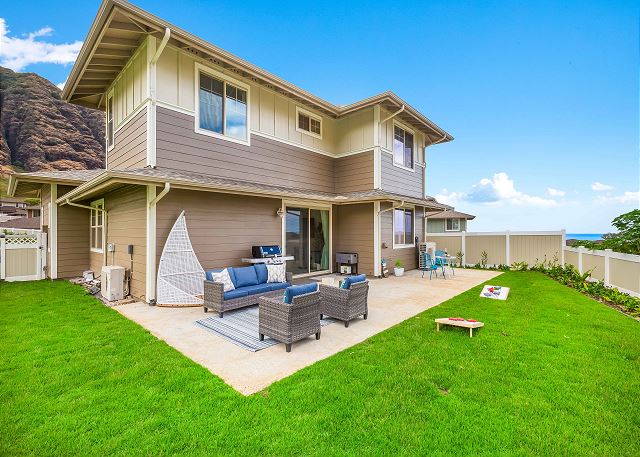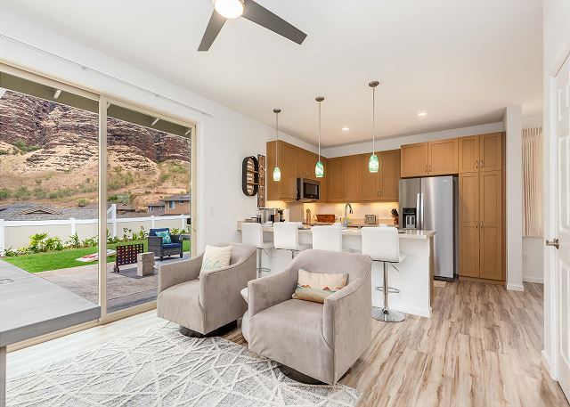 4 ベッドルーム - for 9 宿泊者 (最大 9)ベッドタイプ : 3クイーン、1バンクベッド(2段ベッド)、1ソファーベッド オアフ島の西側、マカハバレーに2023年に建設されたゲートコミュニティー、コテージ・アット・マウナ・オルのトロピカルな一軒家。オーシャンビューの庭のパティオでゆったりとした時間を過ごすたり、バーベキューを楽しむのに最適です。 まだまだ観光客の少ないマカハビーチはイルカの生息地としても知られています。喧騒から離れて、のんびりと家族や友達とハワイらしいひと時を過ごすのに最適です。 4ベッドルーム2.5バスルームの十分な広さの一軒家で9名までご利用いただけます。