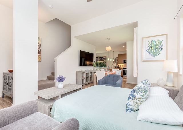 4 ベッドルーム - for 8 宿泊者 (最大 10)ベッドタイプ : 1キング、 1クイーン、2ツイン、1ソファーベッド オアフ島の西側、マカハバレーに2023年に建設されたゲートコミュニティー、コテージ・アット・マウナ・オルの一軒家。24時間セキュリティーのいるゲートコミュニティー。まだまだ観光客の少ないマカハビーチはイルカの生息地としても知られています。喧騒から離れて、のんびりと家族や友達とハワイらしいひと時を過ごすのに最適です。 3ベッドルーム2.5バスルームの十分な広さの2階建の一軒家で8名までご利用いただけます。