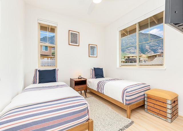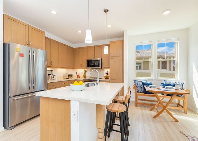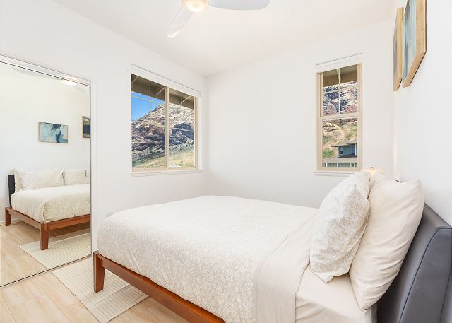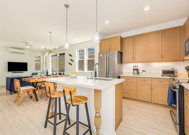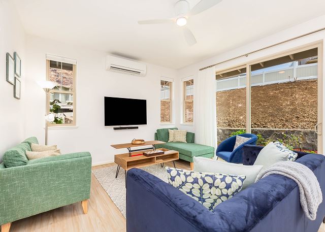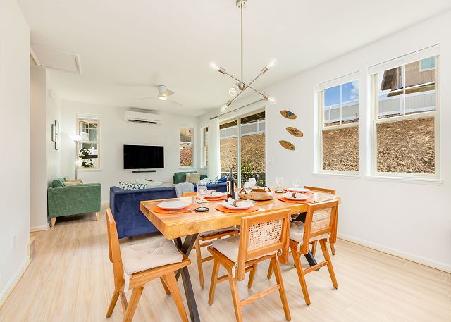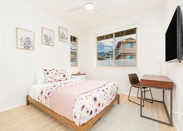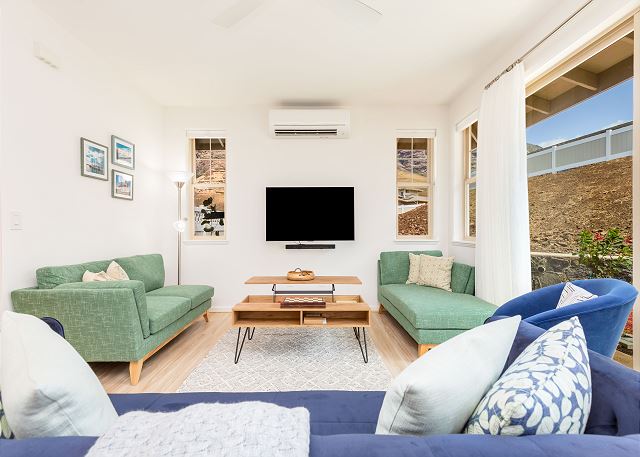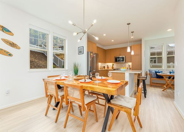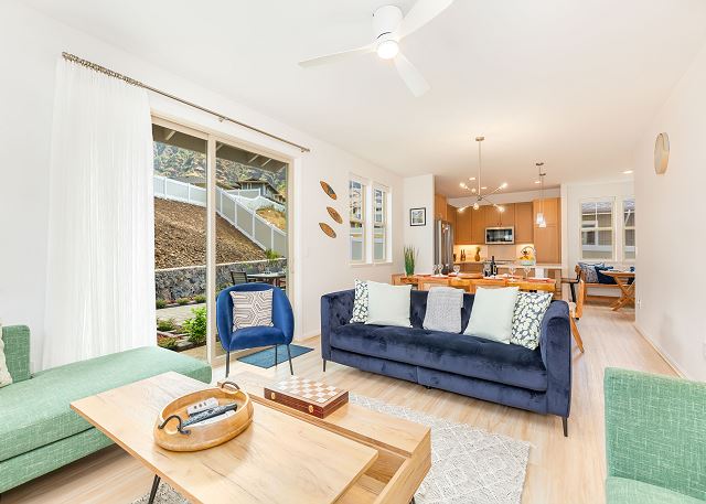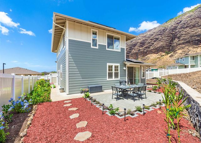 4 ベッドルーム - for 9 宿泊者 (最大 9)ベッドタイプ : 3クイーン、1バンクベッド(2段ベッド)、1ソファーベッド オアフ島の西側、マカハバレーに2023年に建設されたゲートコミュニティー、コテージ・アット・マウナ・オルのトロピカルな一軒家。オーシャンビューの庭のパティオでゆったりとした時間を過ごすたり、バーベキューを楽しむのに最適です。 まだまだ観光客の少ないマカハビーチはイルカの生息地としても知られています。喧騒から離れて、のんびりと家族や友達とハワイらしいひと時を過ごすのに最適です。 4ベッドルーム2.5バスルームの十分な広さの一軒家で9名までご利用いただけます。