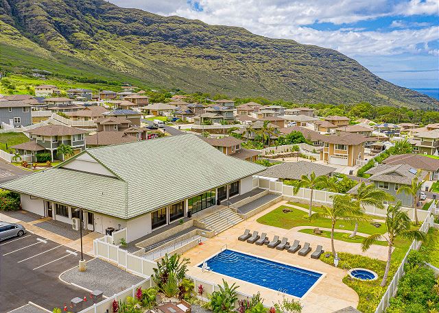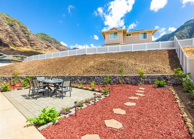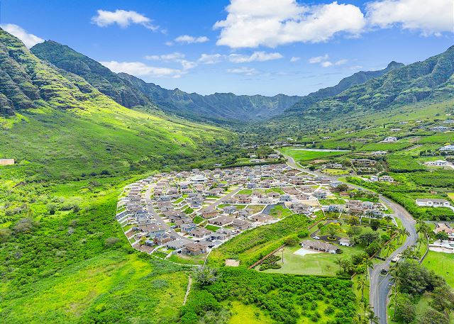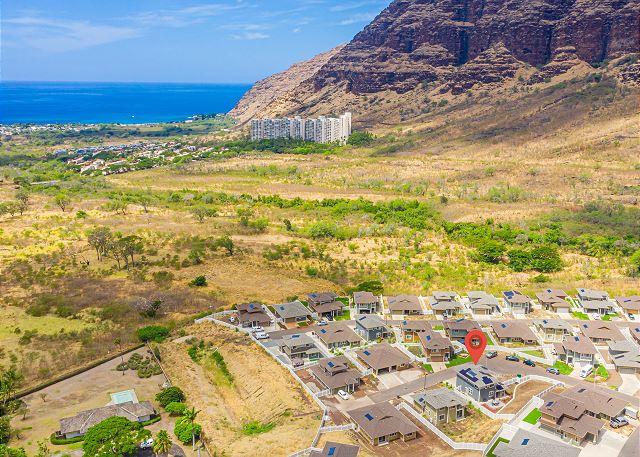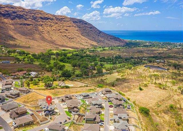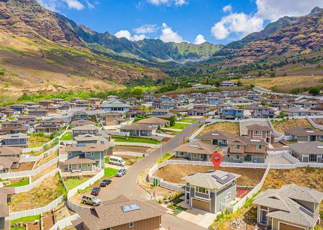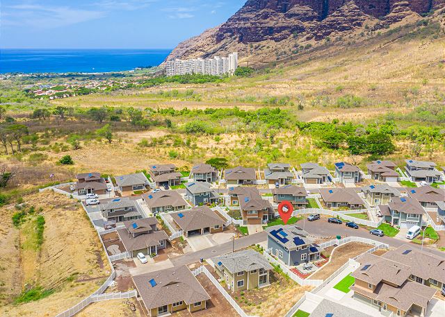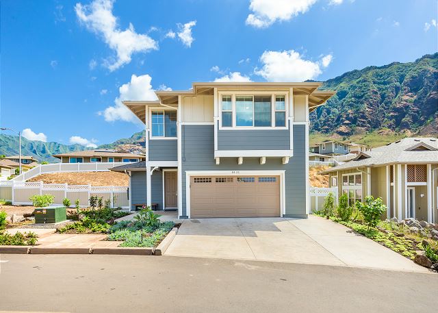 4 ベッドルーム - for 8 宿泊者 (最大 8)オアフ島の西側、マカハバレーに2023年に建設されたゲートコミュニティー、コテージ・アット・マウナ・オルの大きめの一軒家。清々しい芝生が気持ちの良い2階建となります。