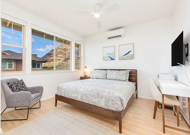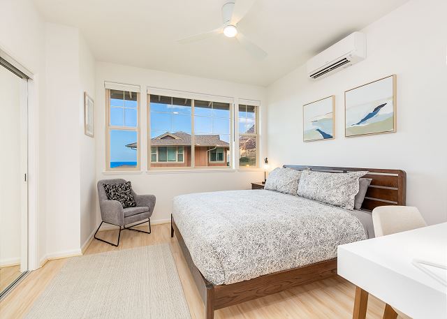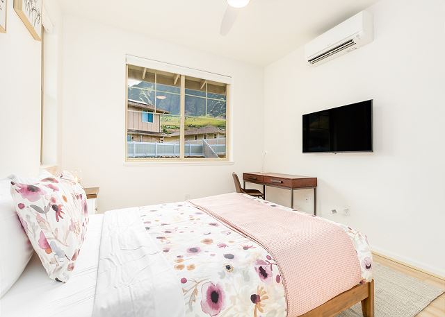 4 ベッドルーム - for 10 宿泊者 (最大 10)オアフ島の西側、マカハバレーに2023年に建設されたゲートコミュニティー、コテージ・アット・マウナ・オルの中でも開発業者の自慢の一軒。1階からも、お庭からも海と山と谷の景色が大きく広がります。 2階のマスターベッドルームと2つのゲストルームの他に、入り口が別になったミニキッチン、洗濯機・乾燥機付きのもう一つのマスターベッドルーム。4ベッドルーム3.5バスルームの十分な広さの一軒家で10名までご利用いただけます。