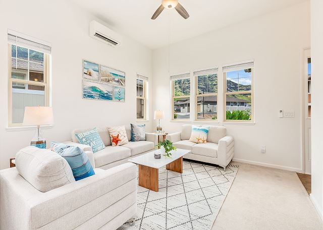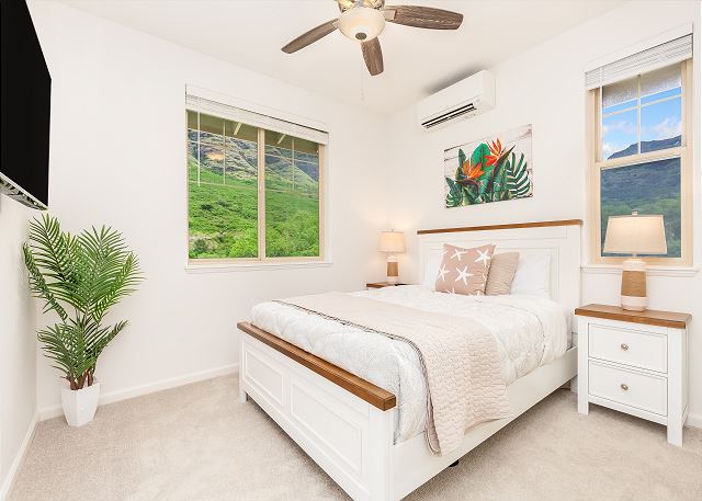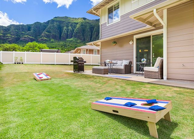 4 ベッドルーム - for 10 宿泊者 (最大 10)オアフ島の西側、息をのむようなマカハ渓谷の麓に2023年に建設されたゲートコミュニティー、コテージ・アット・マウナ・オルの大きめの2階建一軒家。広々とした芝生の庭で、バーベキューや、裸足でゲームをしたり、星空を眺めたり、ゆっくり進む時間をお楽しみ下さい。