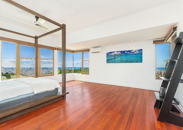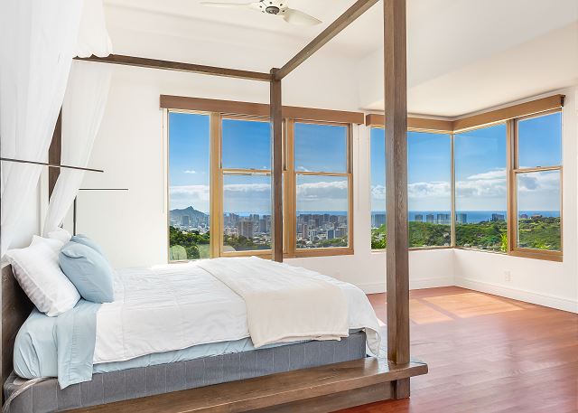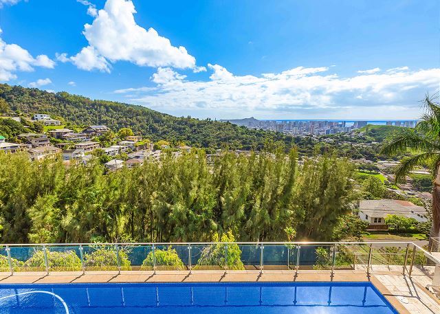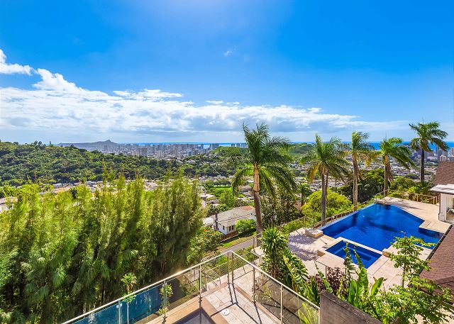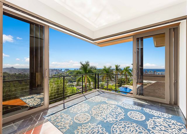 パシフィック・ハイツの丘の上のプライベート・エステートは、ダイヤモンド・ヘッドからエバ・ビーチまで見渡せる眺望が自慢の邸宅。涼しい山の風を感じながらバルコニーでゆっくり過ごす時間は格別です。