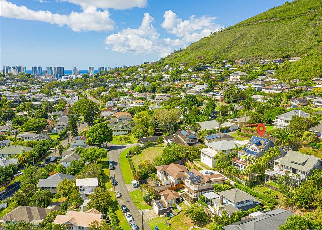 静かな住宅街に位置するこの家は、マノア・マーケットプレイス(セーフウェイ、ロングス・ドラッグス、カフェ、レストランなど)、有名なワイオリ・キッチン&ベイクショップ、そしてプウ・ウアラカアやマノア滝といった人気のハイキングコースからわずか数分の距離にあります。ハワイ大学マノア校もすぐ近くにあるため、キャンパス訪問、卒業式、長期滞在の学生にとって理想的な宿泊先です。ワイキキビーチ、アラモアナセンター、ホノルル美術館、カイマナビーチなど、主要な観光スポットへも車で短時間で行くことができます。