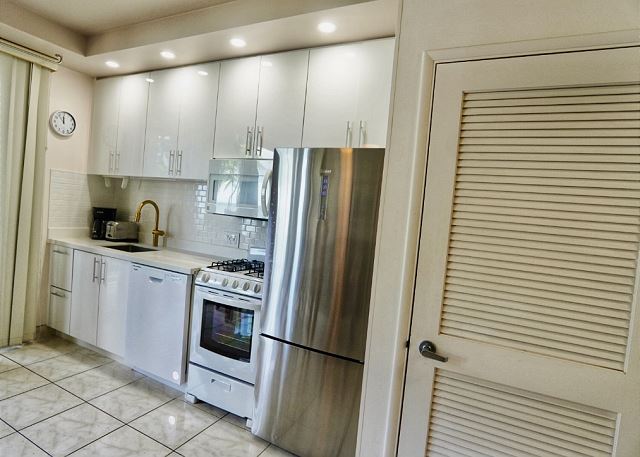 コンドミニアムならではの使いやすいフルキッチン。洗濯機&乾燥機も室内設置で、お子様連れやビーチが大好きな方、少し長めに滞在したい方に特におすすめです。